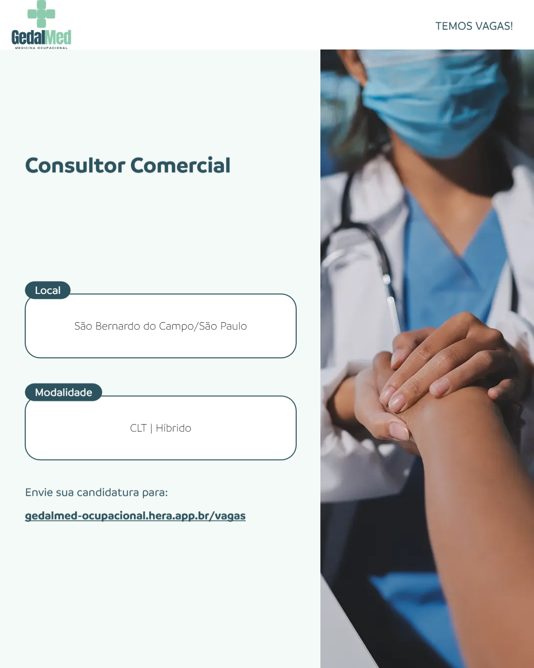 O Consultor Comercial da GedalMed será responsável por prospectar, desenvolver e gerenciar oportunidades de negócios. Garantindo crescimento sustentável da carteira de clientes e fortalecendo o relacionamento com empresas parceiras. Atua como ponte entre clientes e a equipe técnica, assegurando que as soluções oferecidas atendam às necessidades legais e operacionais de saúde e segurança do trabalho.